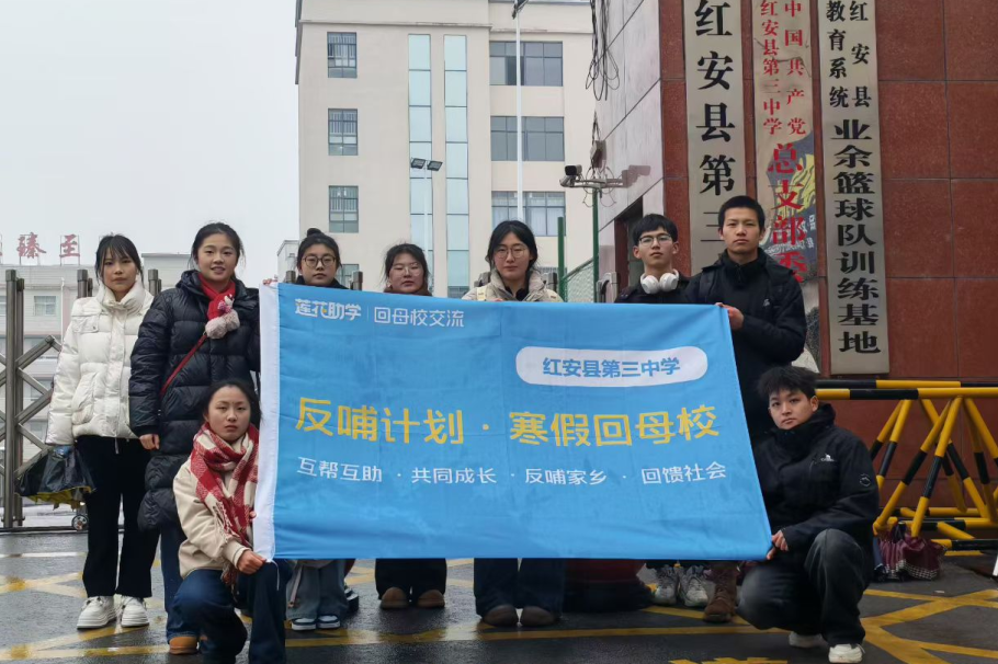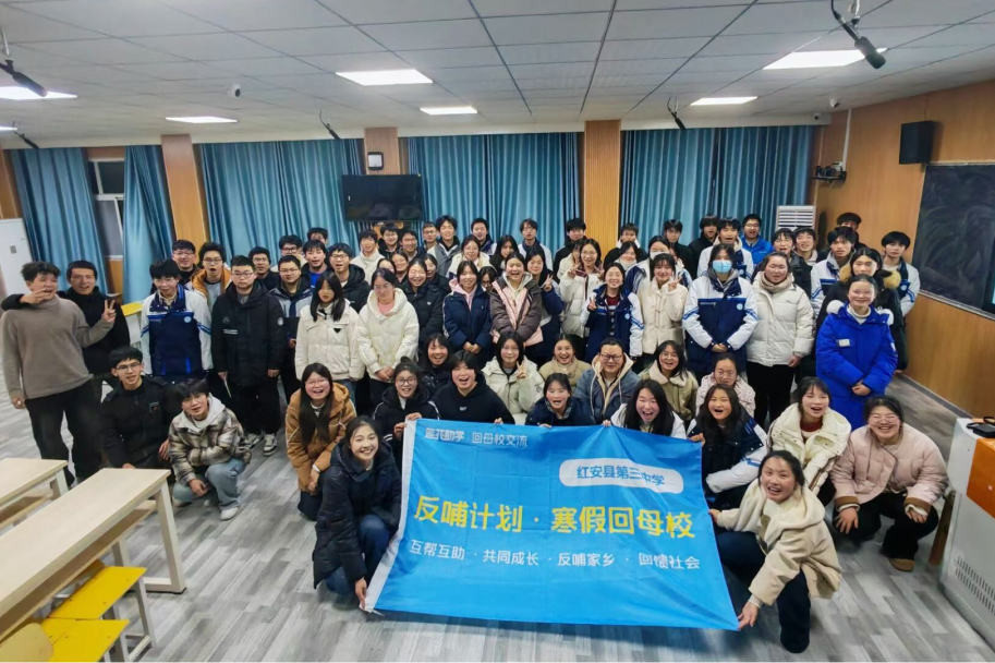 2026 年寒假,她再度出发,不仅连续第二年回到红安县第三中学参与母校反哺交流活动,还作为首届反哺学子,远赴湖北荆门沙洋县的沙洋中学与沙洋后港中学开展反哺活动。为了让活动呈现最好的效果,她和队友反复排练、打磨 PPT,在当地老师的热情支持下,这场跨地区的反哺之约圆满落幕。课堂上,她与同伴分享大学生活,通过击鼓传花、谐音梗大挑战等趣味互动拉近距离,耐心解答学弟学妹的疑惑,收集青春心愿,在大合唱的歌声中传递美好期许。