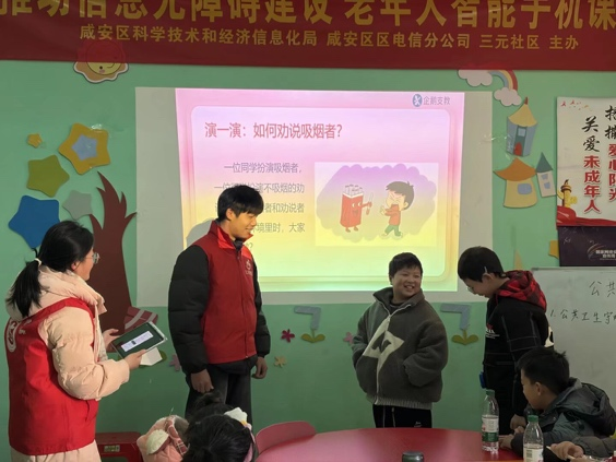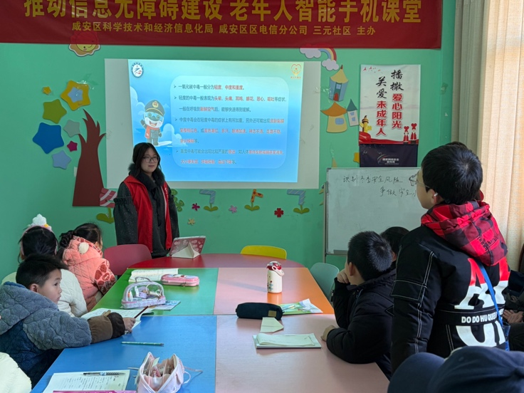 在咸安区三元社区,李成、郑洁、曾楠三位咸职学子齐聚一堂,以不同的方式扎根社区课堂,将安全知识与温暖陪伴送到孩子们身边,在社区的小天地里书写着别样的志愿故事。
