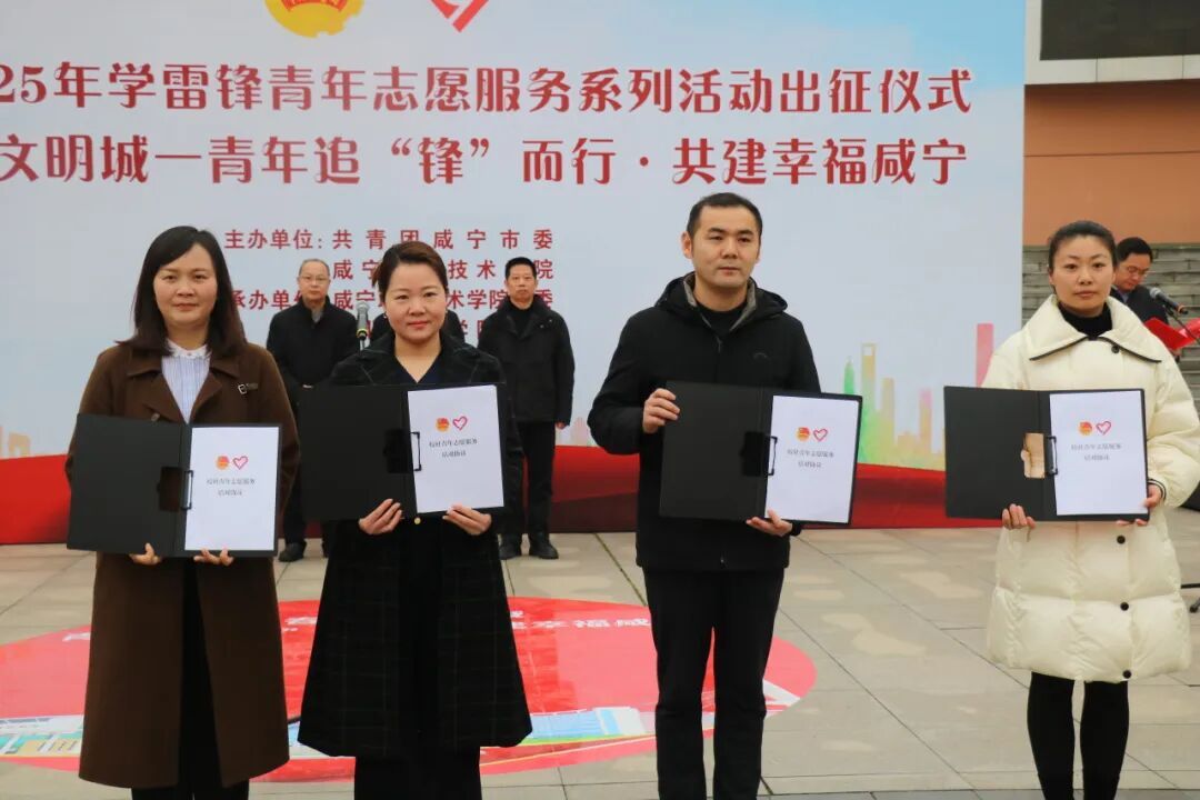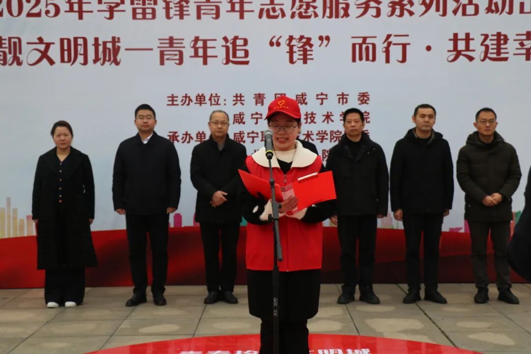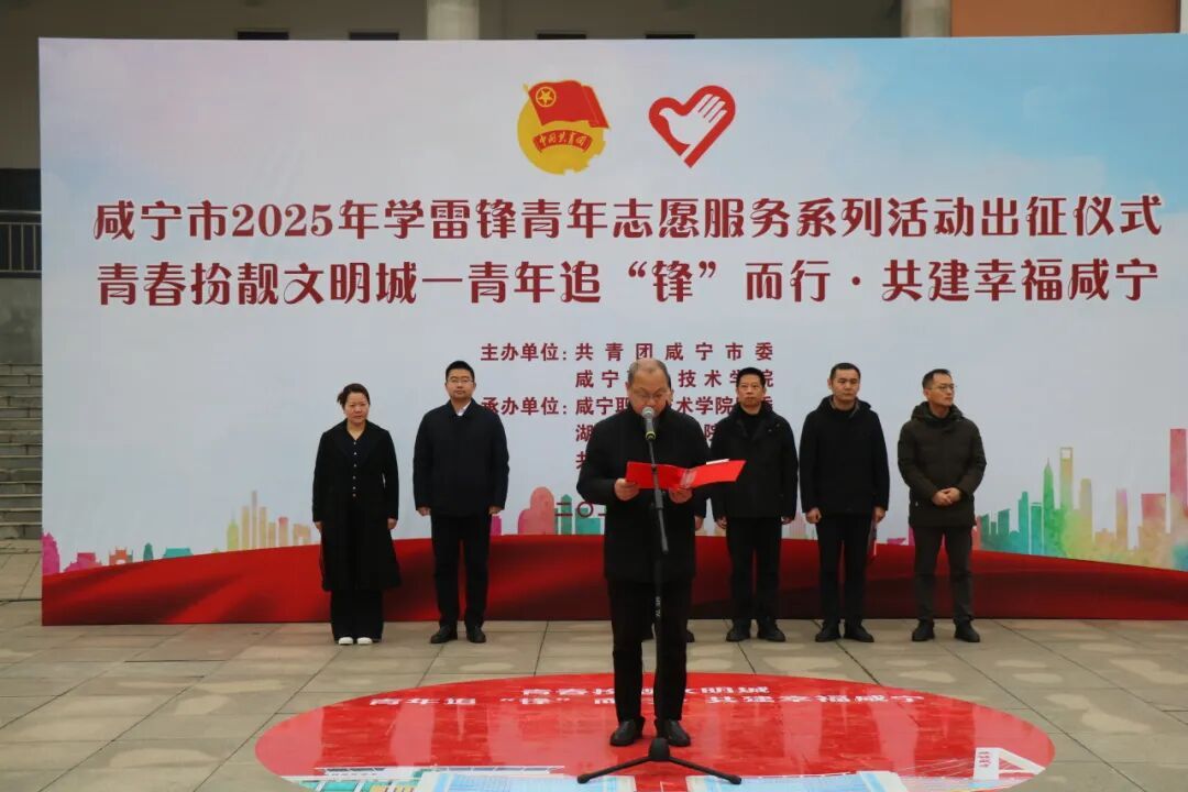 2025年3月7日,一个充满活力与希望的日子,共青团咸宁市委携手咸宁职业技术团委、湖北科技学院团委、共青团咸安区委,在咸宁职业技术学院文华广场隆重举行了学雷锋青年志愿服务系列活动的启程仪式。这一天,春意盎然,阳光明媚,仿佛连大自然都在为这场活动献上祝福。本次活动的核心宗旨是传承雷锋精神,培育新时代的青年,服务社会大众,为青年志愿者注入强大的精神动力,让他们在奉献中成长,在服务中找到人生的价值和方向。